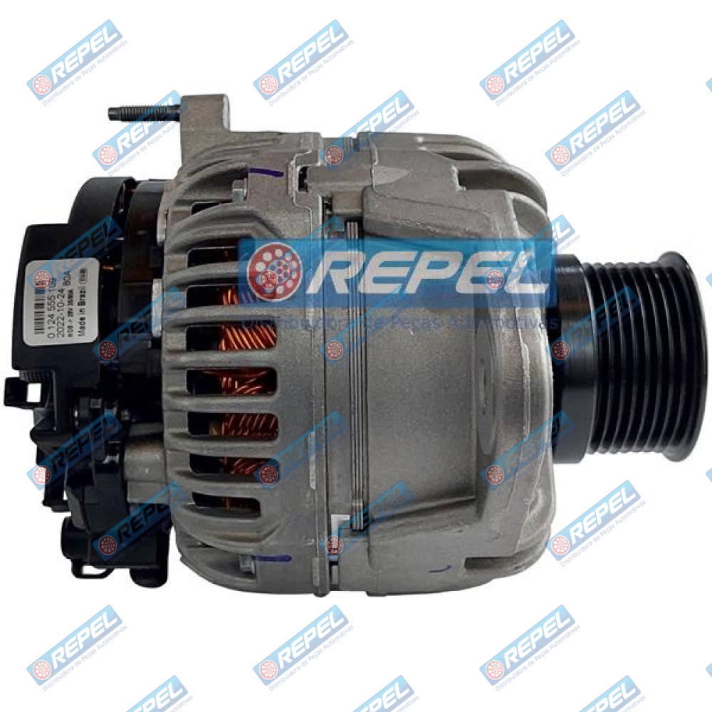 Alternador Bosch 24V 80Amp . John Deere 120D 130G 130GLC 210G 210GLC 2144G 2154D 2454D 250D 300D 250G 290GLC 2954D 300D 350DLD 3754D 444K 524K 544J 524K 624K 644K 700J 744K 724K 750J 824J 824K 844K 850J . ORIGINAIS : Bosch 0124555028 / SEG 0124555109 / John Deere AT387573