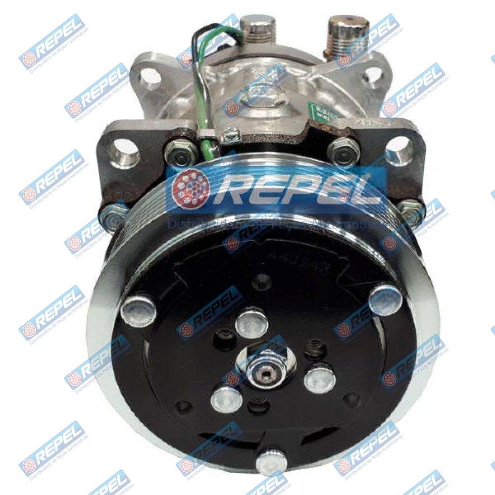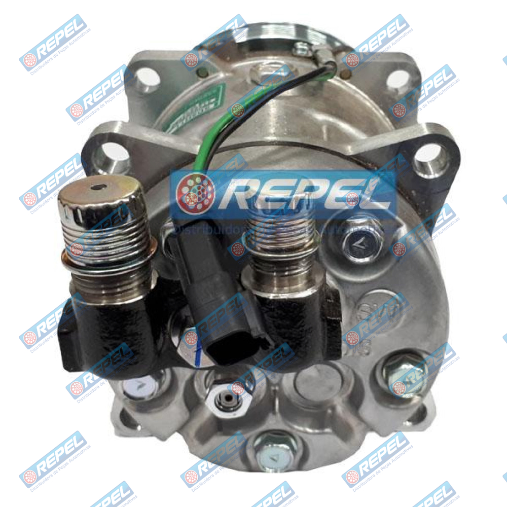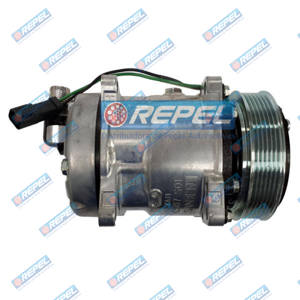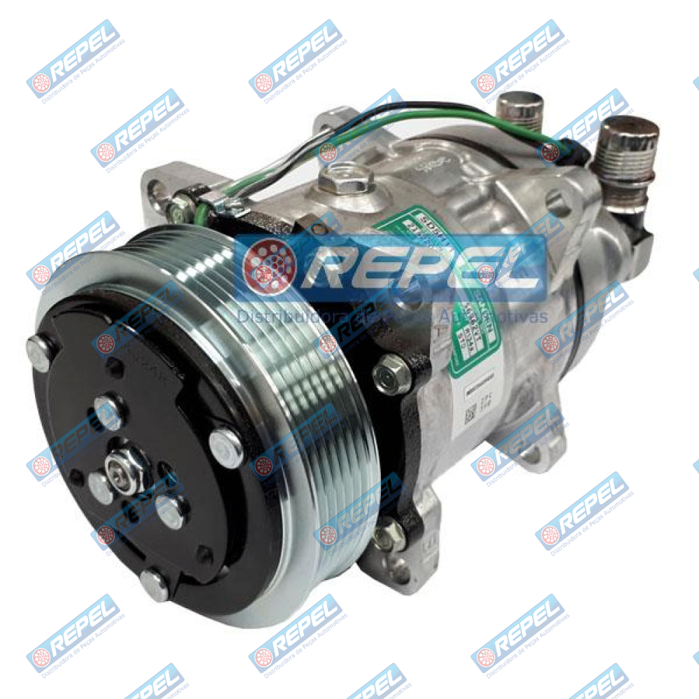 Compressor Ar Condicionado Sanden 5H11 12V 6PK 119MM 8 Orelhas Saída Vertical Case New Holland Bobcat Mini Carregadeiras e Universal Adaptações