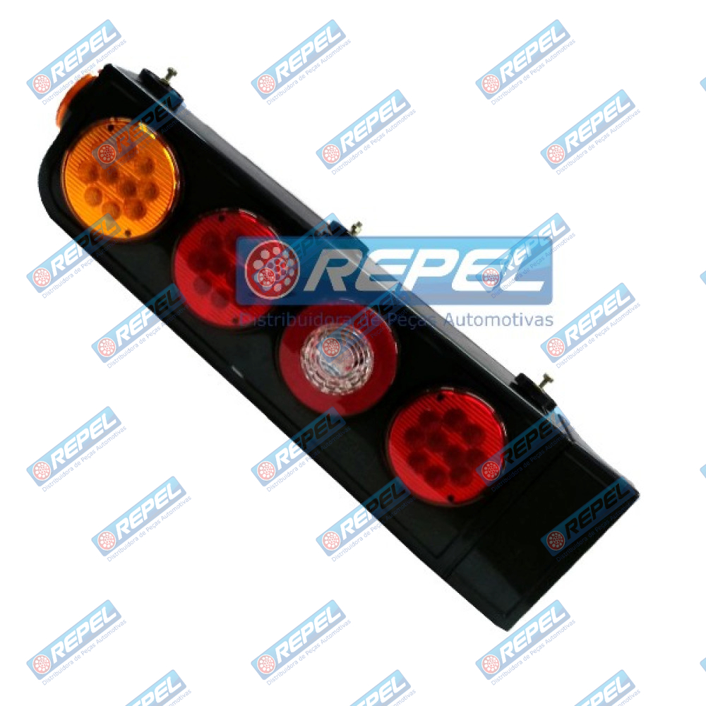 Conjunto Lanterna Traseira LED 24V Randon Carretas Implementos 2008> C/Triangulo e Aba Lado Direita Original: SN2023.24D / SN202324D / SN202324299D