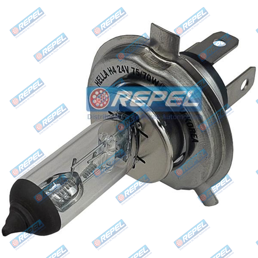 Lâmpada Farol H4 24V 75/70W P43T Biodo Scania Volvo DAF Iveco MBB e Outros . Originais : H424V / OS64196 / GE50450 / HH424V / Hella HH424V
