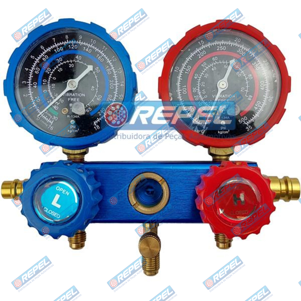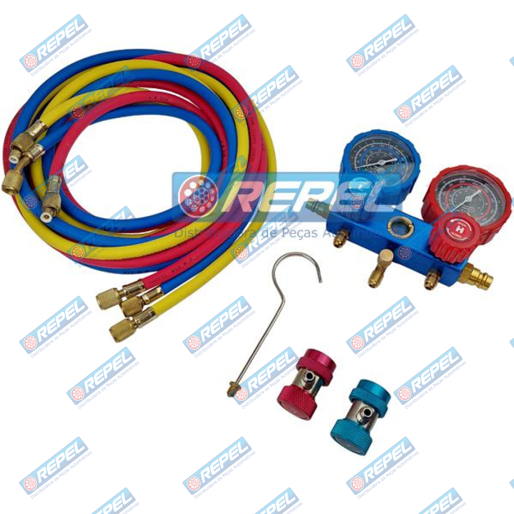 Manifold (Manômetro Pressão) Ar Condicionado R22 R134 R404 Com Mangueira 2500MM Para Teste Ar . ORIGINAIS : RP500560 / RC500560 / 500560 Repel RP500560 / Royce 500560