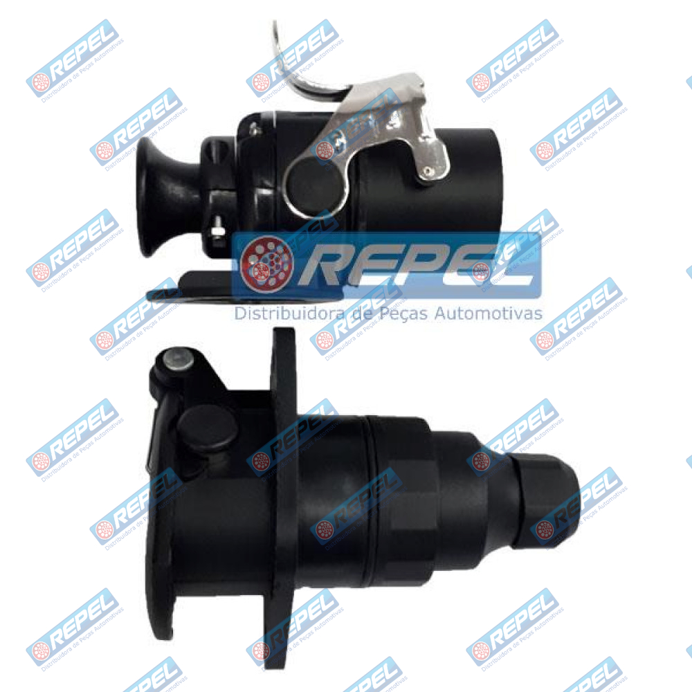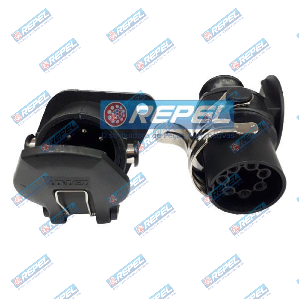 Tomada Elétrica para Engate Redonda 7 Polos Completa p/ ABS e Rastreador - Nylon Preto - 12/24V Para Carretas e Reboques . ORIGINAIS : DNI8390 / DNI 8390 / ISO7638